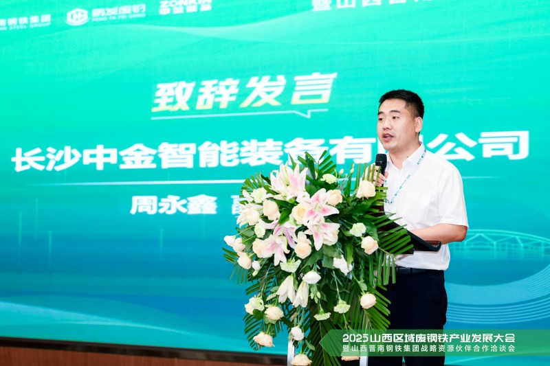 7月22日,2O25山西区域废钢铁产业发展大会暨山西晋南钢铁集团战略资源伙伴合作洽谈会,在山西临汾隆重召开,中金装备作为大会协办方上台作开幕致辞。
